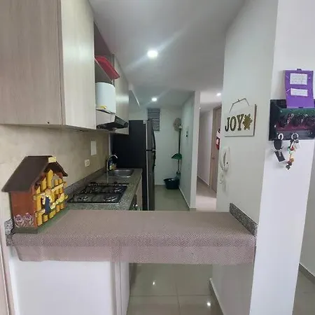 A fully furnished kitchen with a fridge is among the self-catering amenities provided. Apartamento Cartagena - Terrazas De Calicanto Apartment is close to the nearest bus station - PUNTO B portal de transcaribe.